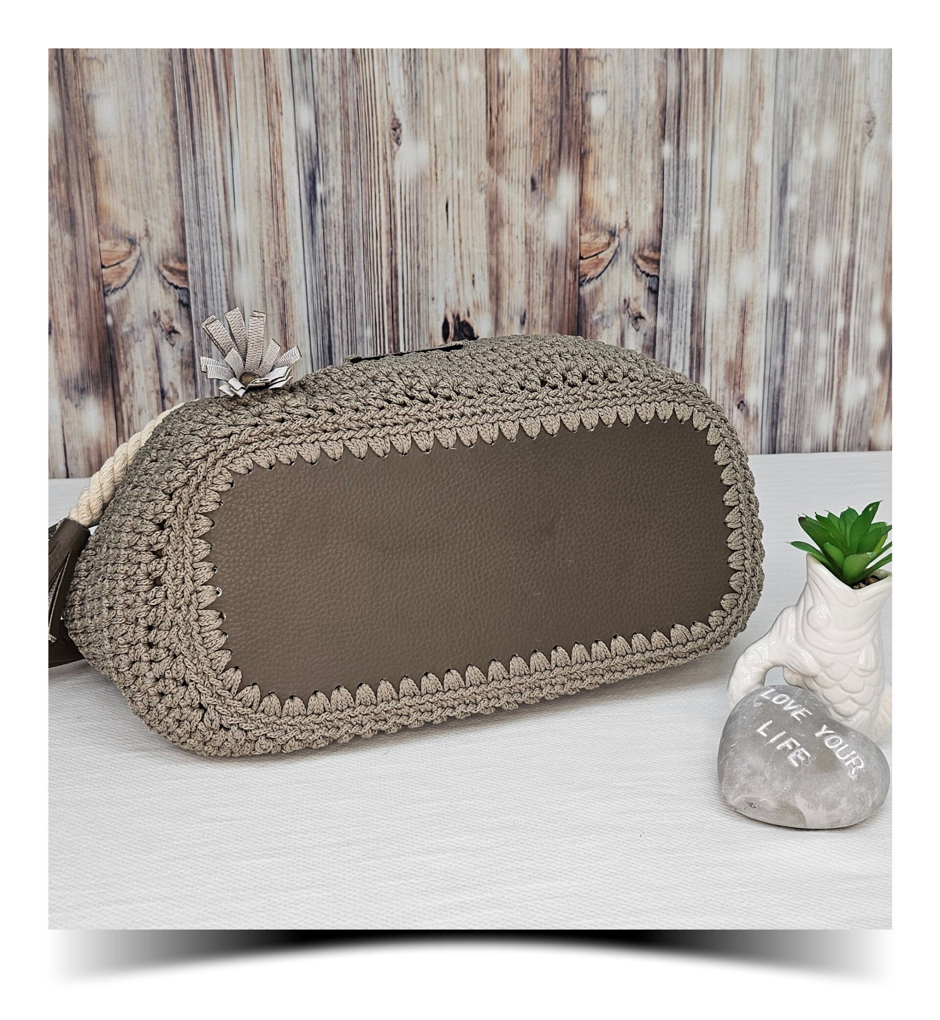 Die Luminda Rucksack-Tasche Taube vereint minimalistische Eleganz mit echter Handarbeit. Sie wurde aus robustem Garn handgehäkelt und mit einem warmen braunen Baumwollfutter ausgestattet, das nicht nur weich ist, sondern auch maximale Haltbarkeit bietet.