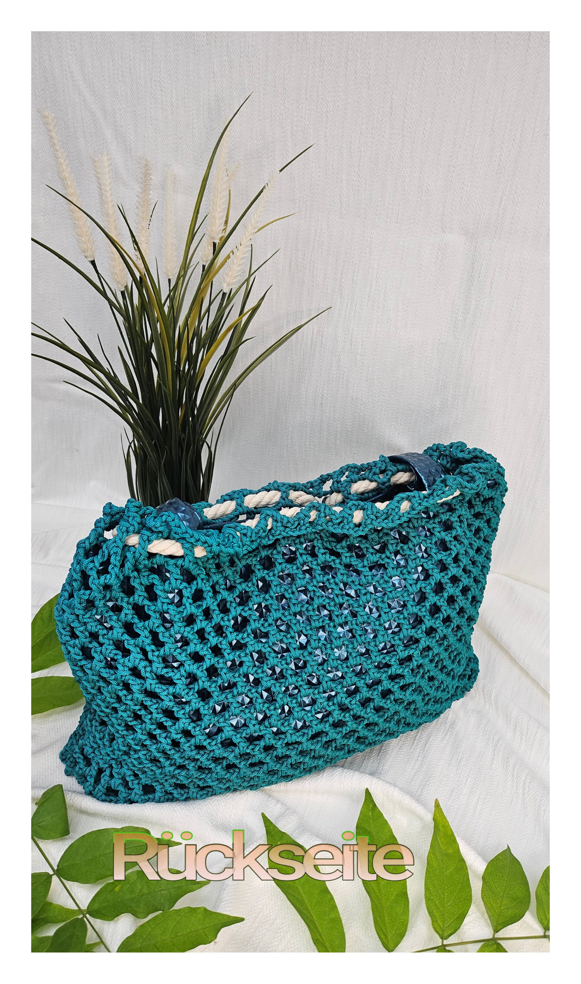 Diese handgefertigte Luminda Netztasche vereint lässigen Boho-Look mit funktionalem Design. Das hochwertige Garn ist kunstvoll gehäkelt und sorgt für eine luftige, sommerliche und moderne Optik – perfekt für Alltag, Strand, Reisen oder Stadtbummel.