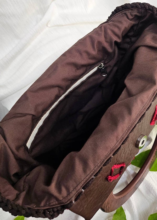 Die Luminda Noir Chic ist eine kleinere, handgefertigte Häkel-Tasche, die Eleganz, Stil und Alltagstauglichkeit perfekt vereint. Das fein gearbeitete Streifenmuster in Dunkelbraun und Weinrot macht sie zu einem echten Blickfang – ideal für Cafébesuche, Dinner, Alltag oder besondere Anlässe.
