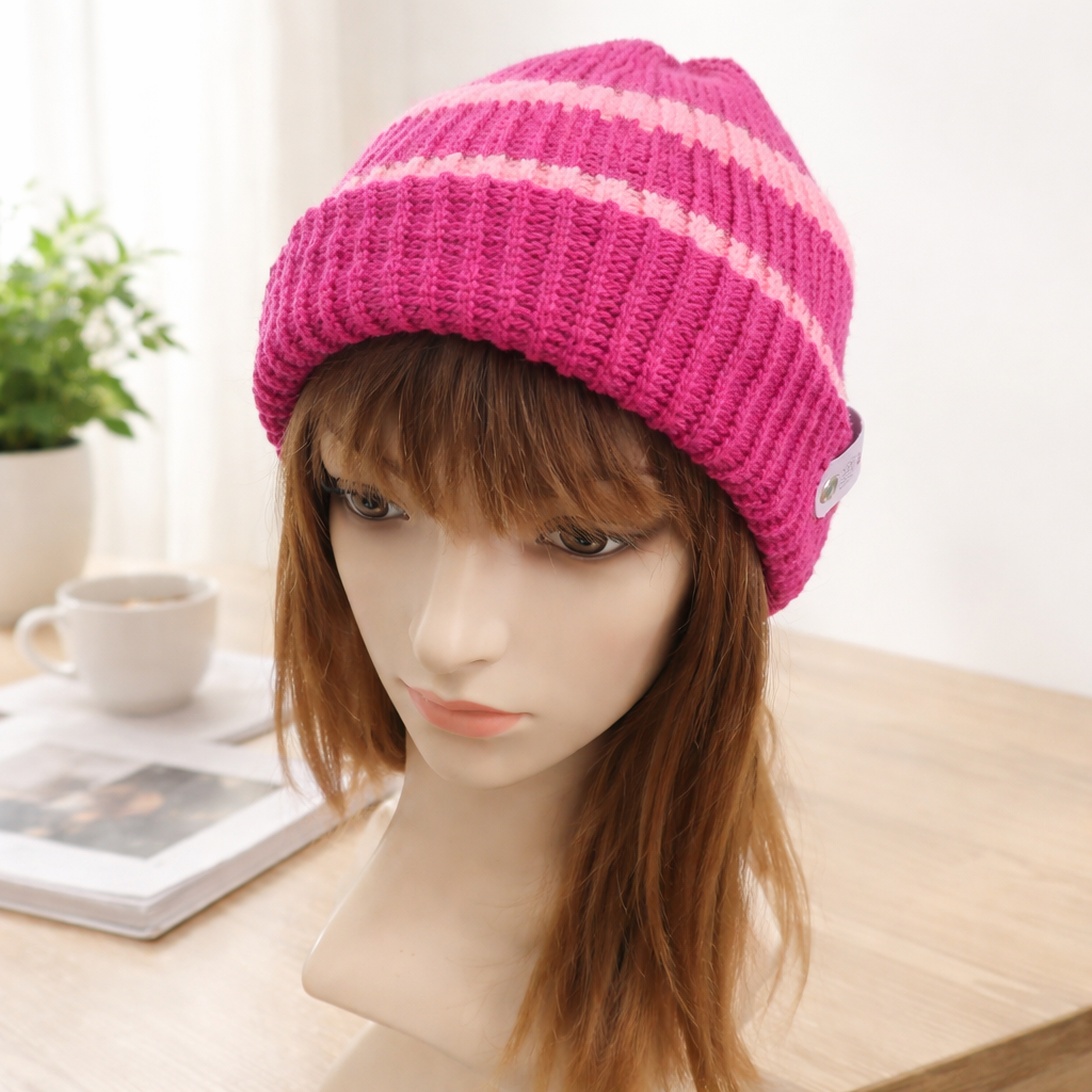 Strickmütze in Pink & Rosa gestreift – kuschelig weich