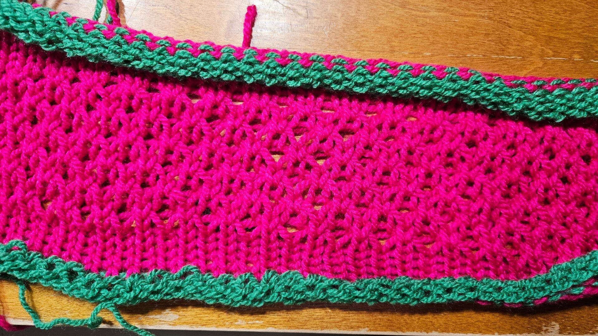 - Technik: Grundstrick + gezielte Umschläge